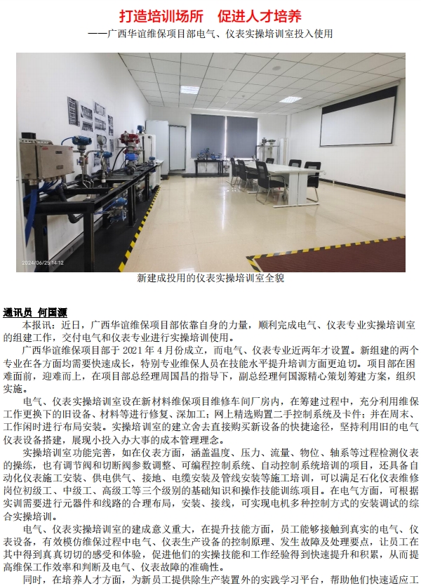 廣西華誼維保項目部電氣、儀表實操培訓(xùn)室投入使用