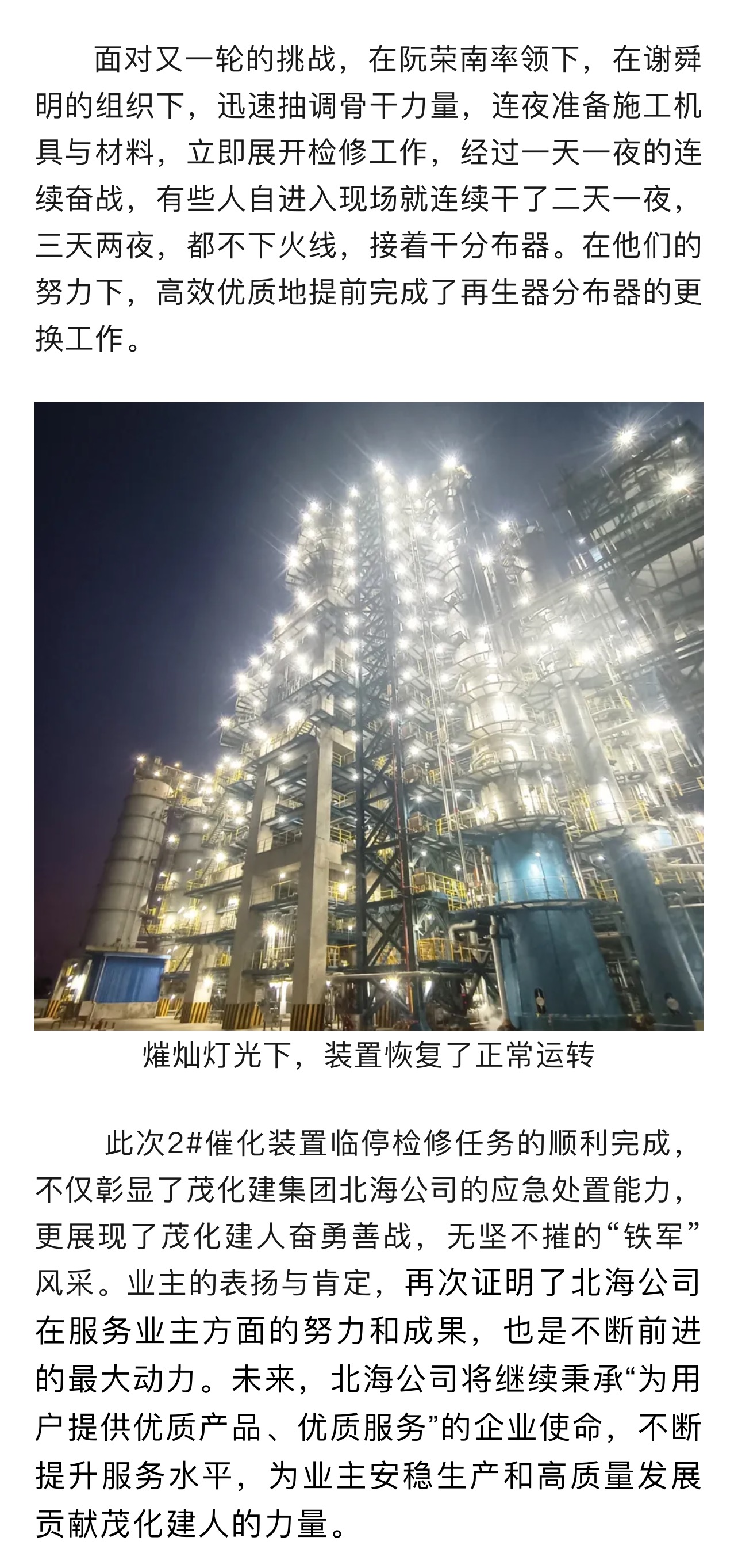茂化建北海公司2#催化臨停檢修紀(jì)實(shí)