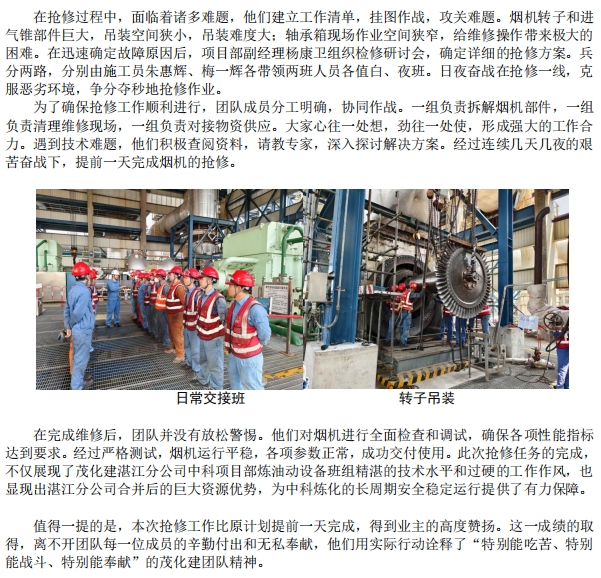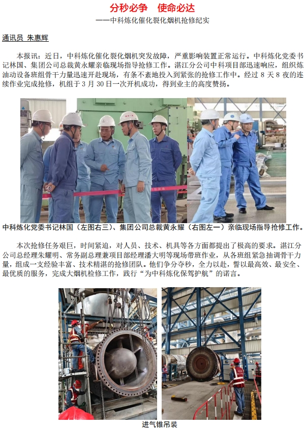 中科煉化催化裂化煙機(jī)搶修紀(jì)實