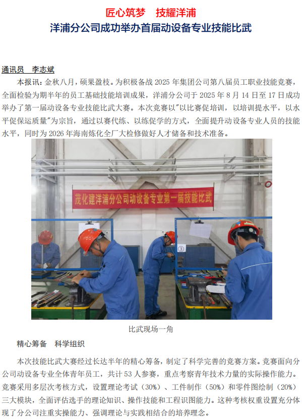 洋浦分公司成功舉辦首屆動(dòng)設(shè)備專(zhuān)業(yè)技能比武
