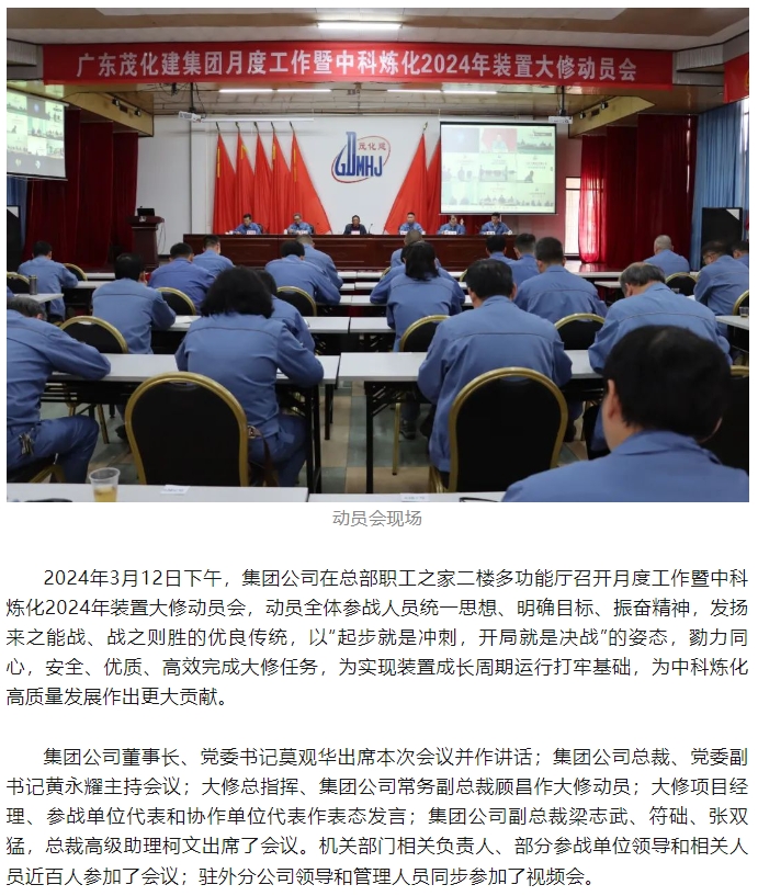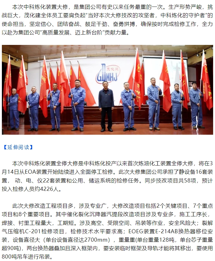 勠力同心擂響戰(zhàn)鼓 千軍萬馬出征大修——集團(tuán)公司2024年中科煉化裝置大修動